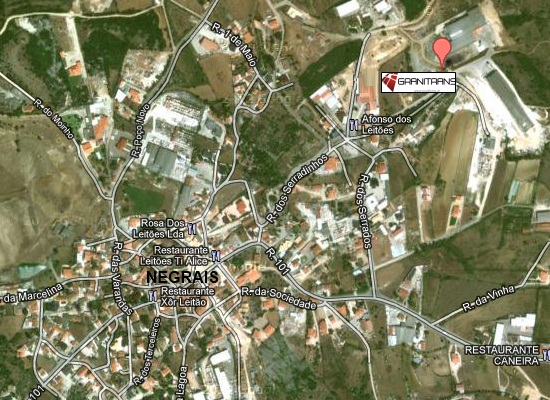 A base logística, fábrica e sede é em Negrais. Esta fábrica e armazém está equipado com a mais recente tecnologia da industria da pedra, dispõe de máquinas de serrar, flamejar, bujardar entre outras. Estamos a 20km de Lisboa, 15km de Sintra e Mafra e a 12km de Loures. Venha visitar-nos.